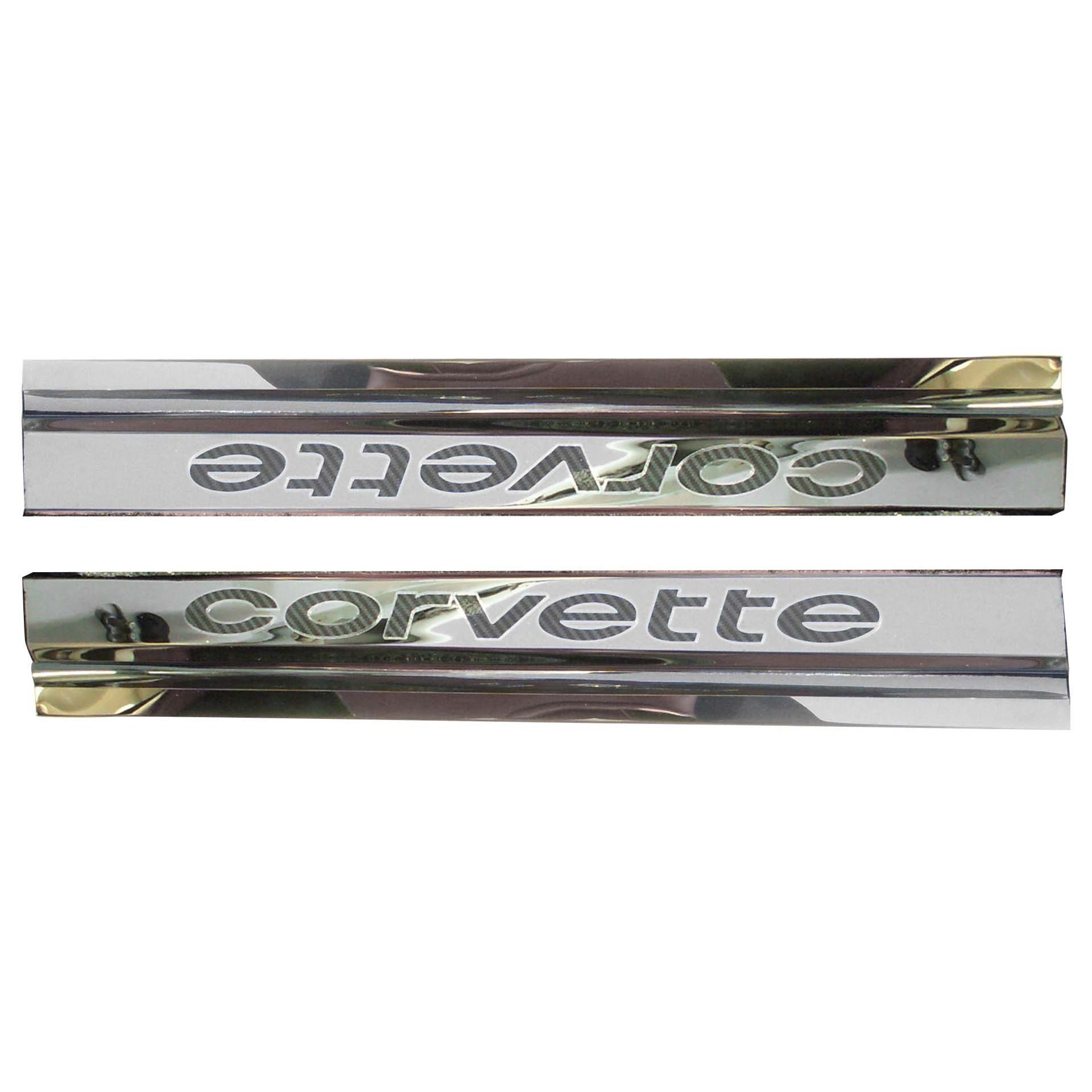 Dress up your Corvette with our Polished Stainless Steel Door sills with Green Carbon Fiber Vinyl Color lettering Inlay. These trim pieces are designed to fit all 1978-1982 Coupe & Convertible C3 Corvettes over the stock door sill.