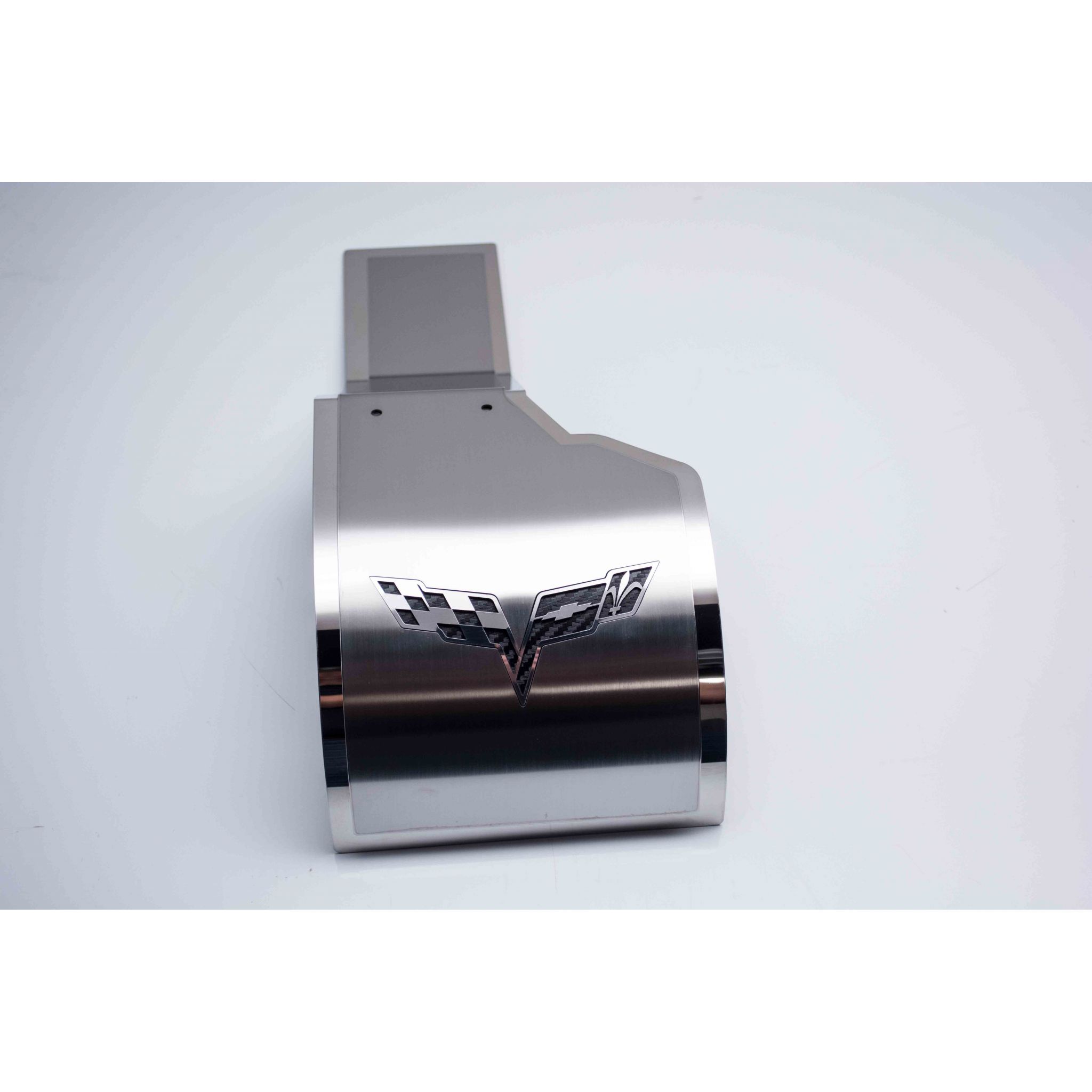 Give your Corvette the gift of deluxe with our layered stainless steel Deluxe Alternator Cover with Crossed Flags, w/ Yellow Carbon Fiber vinyl color. Part does not fit 09-13 ZR1, will fit all other C6 models.