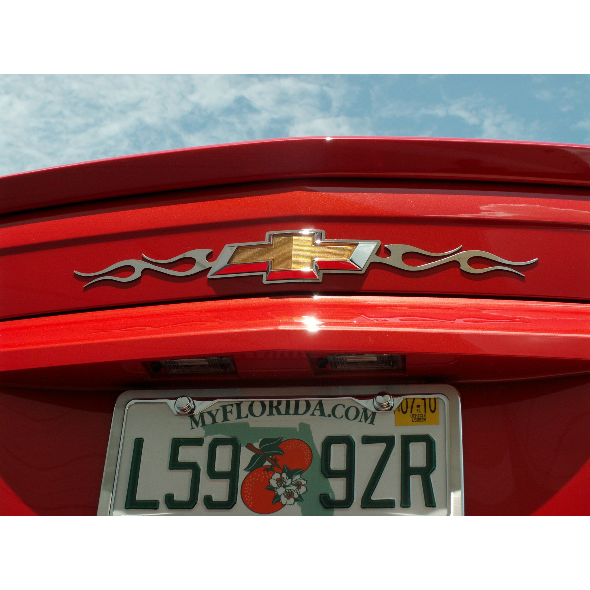 Dress up your Camaro with our Polished – Stainless Steel, Rear Chevy Emblem Trim with Tribal Flames. These trim pieces are designed to fit all 2010-2013 Coupe and Convertible Camaros around the rear Chevy emblem.