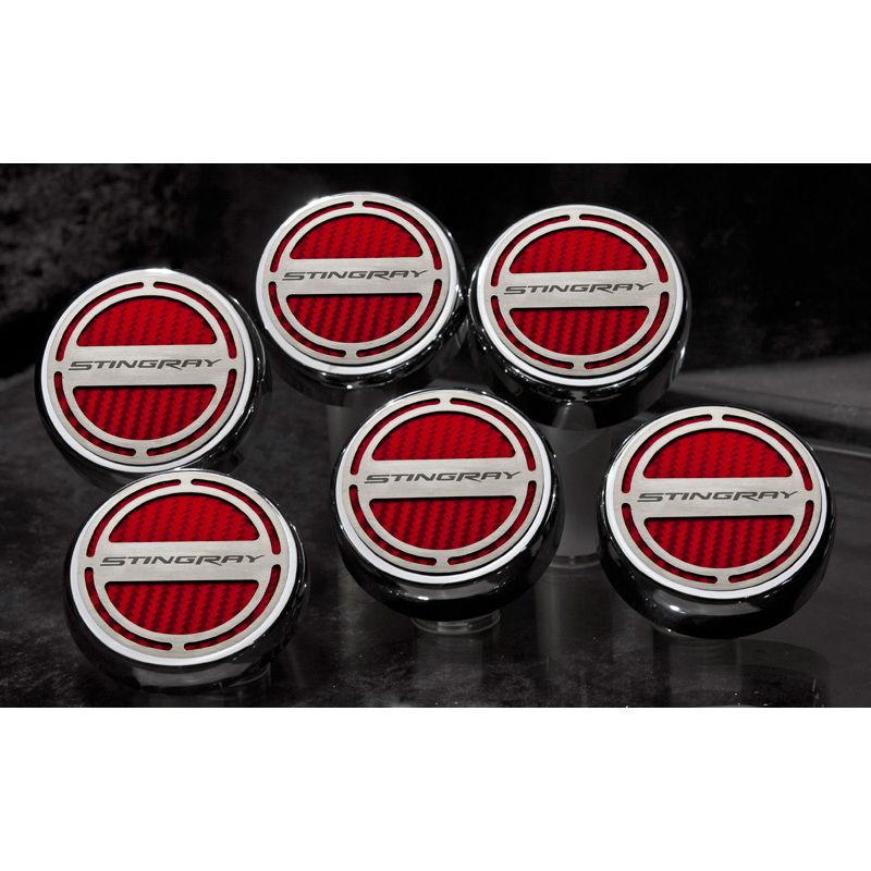 Dress your engine with our 2014-2019 Automatic Corvette Stingray Fluid Cap Covers 5 Piece Set With ”Stingray” Lettering with Dark Blue Solid color vinyl. Designed for manuel transmission equipped 2014-2019 Z06/Z51/C7 Corvettes ONLY.