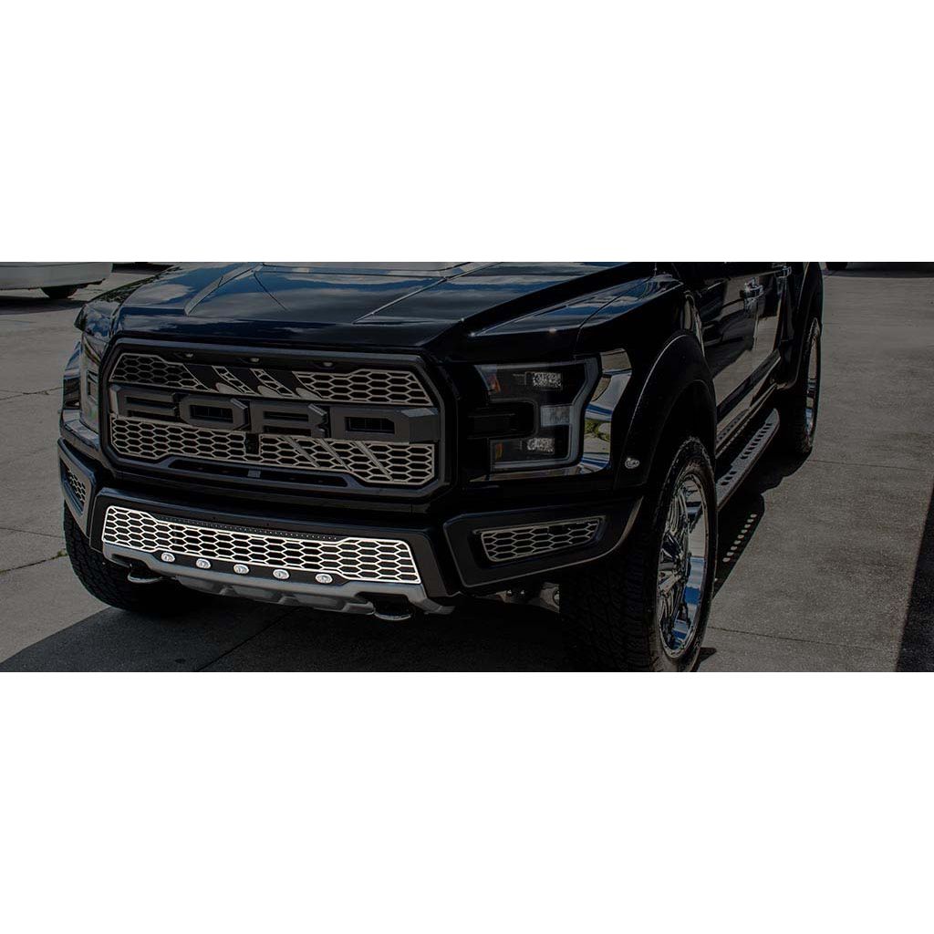 Change the look of your Raptor front end with our 1-piece stainless steel Front Lower Replacement Grille, in a POLISHED finish and with LED Lights! Designed to completely replace the front lower grille of your 2017 Ford Raptor.